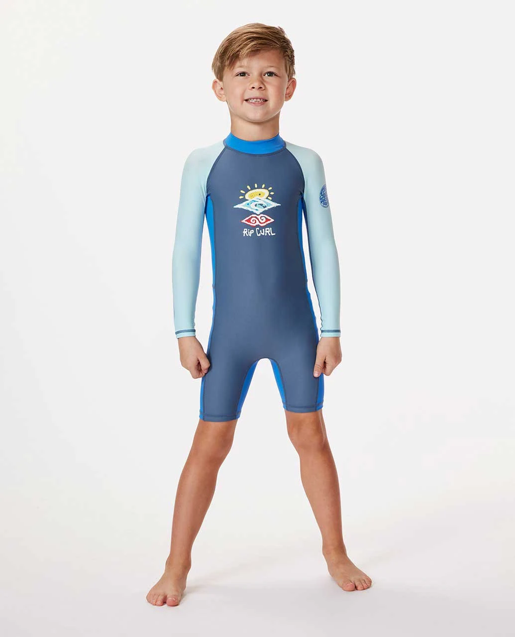 Prepare your young shredder for all water escapades with the Cosmic UPF Long Sleeve Springsuit, specially designed for Kids (1-8 years). This performance-fit rash vest ensures optimal style and functionality during endless water fun. With a UPF 50+ UV rating, it offers exceptional sun protection. The front and back print adds a fun visual appeal, while the zip back closure ensures easy on and off. The flatlock stitch detail guarantees durability and comfort, making it perfect for aquatic adventures. Gear up your kids with the Cosmic UPF Long Sleeve Springsuit and let them explore the water with maximum protection and style.
