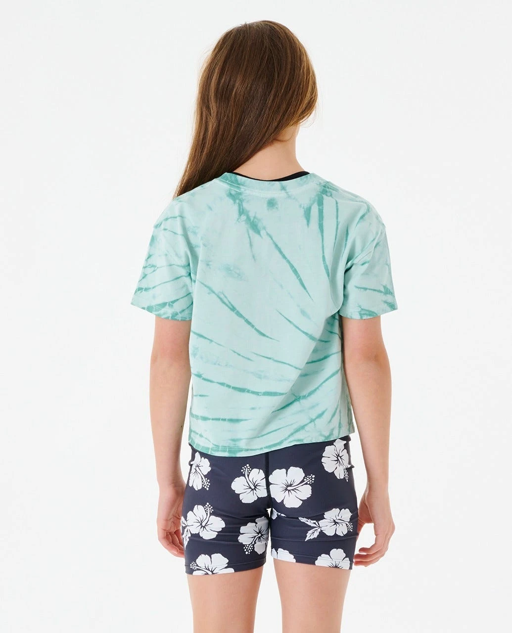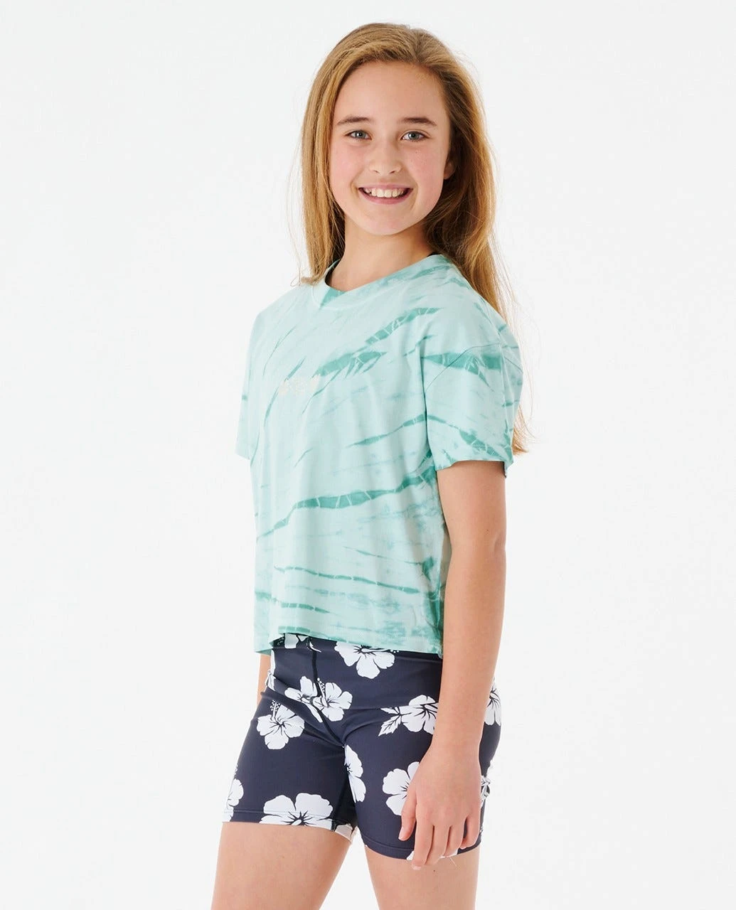 The Desert Waves Crop Tee is a rad Rip Curl t-shirt featuring a fun modern crop design with tie dye effect, comfy cotton composition and front print.
