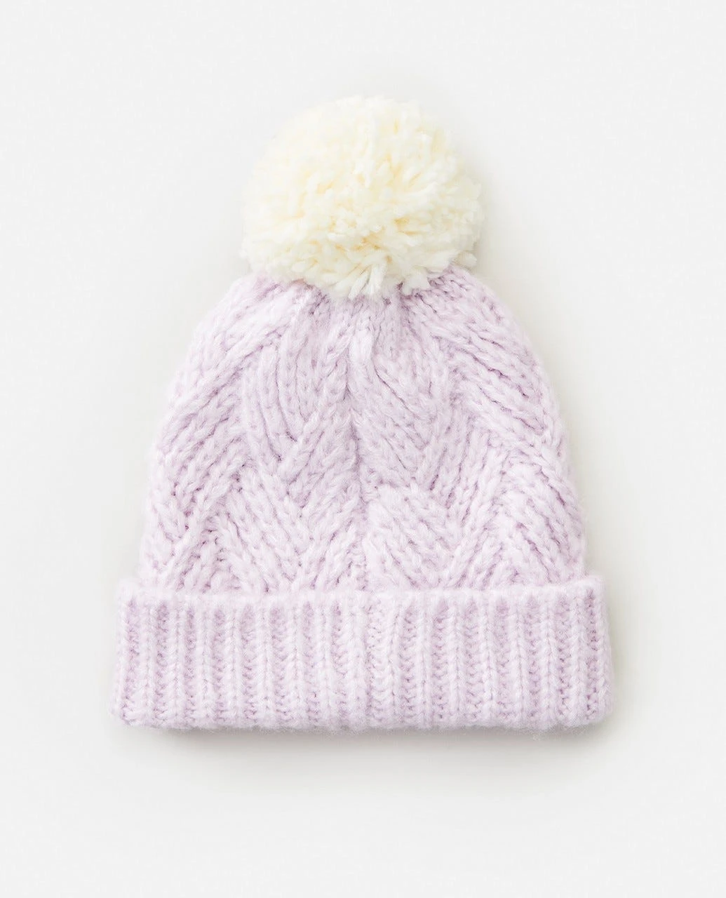 Made with a soft acrylic polyester the Groundswell Pom-Pom Beanie is a great girl’s beanie for winter. Designed with a fancy knit and turn-up detailing, finished with a large contrast pom-pom and a woven clamp.
