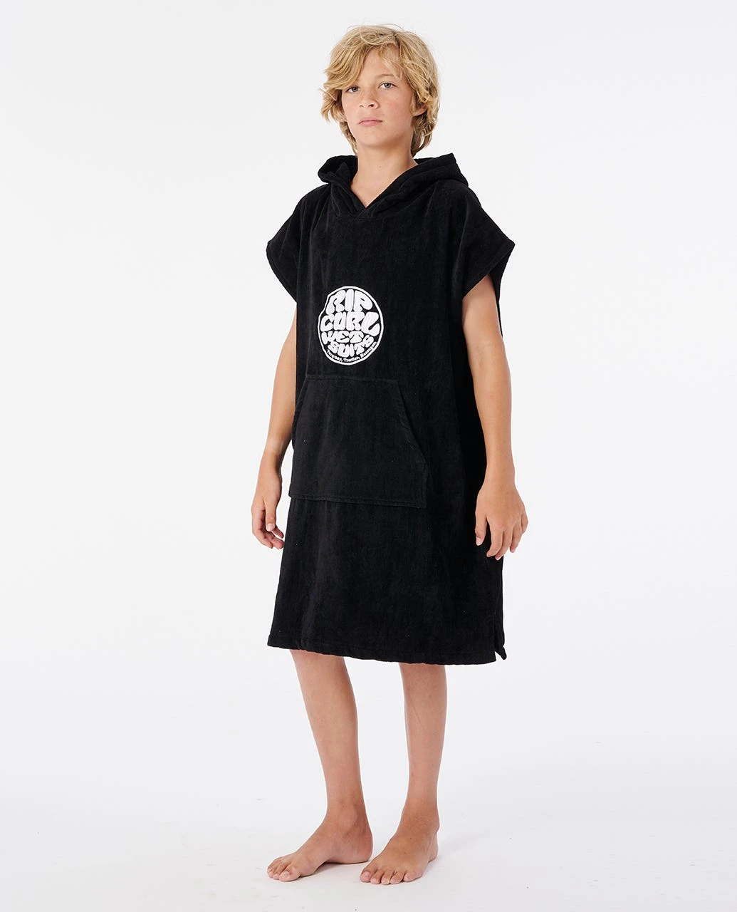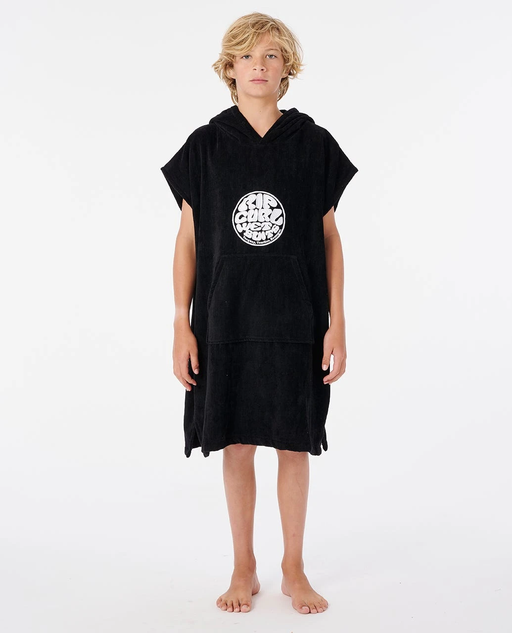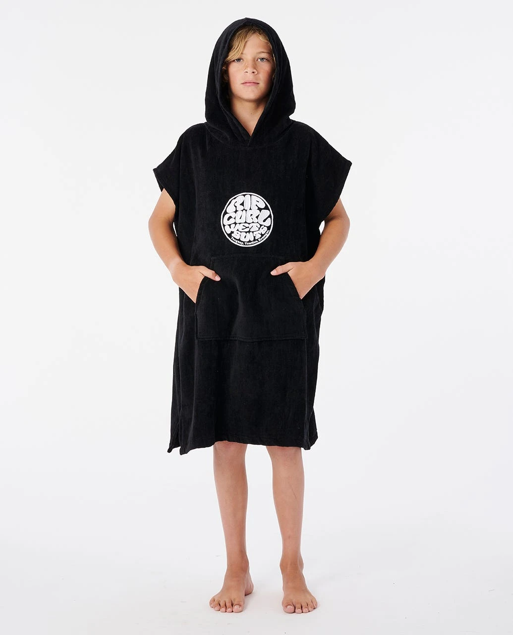 Features: COTTON VELOUR BRUSHED FINISH, Standard fit hooded towel, Embroidered logo, Small size 65cm x 60cm, Large size 90cm x 65cm.