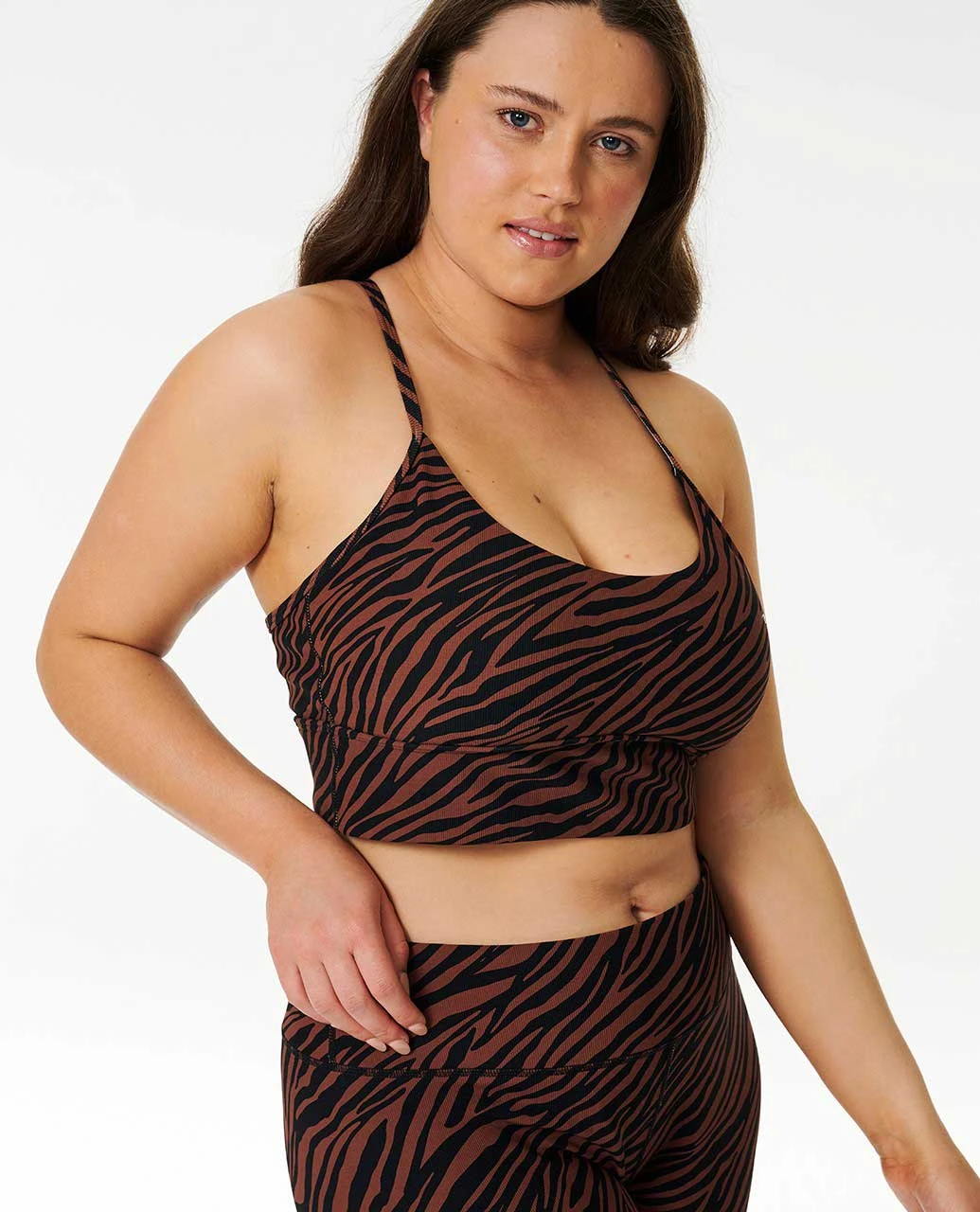 Features: NYLON XTRA LIFE LYCRA RIB, VaporCool moisture control, Cropped, High density print, All over yardage print, Removable padding, Internal power mesh for support.