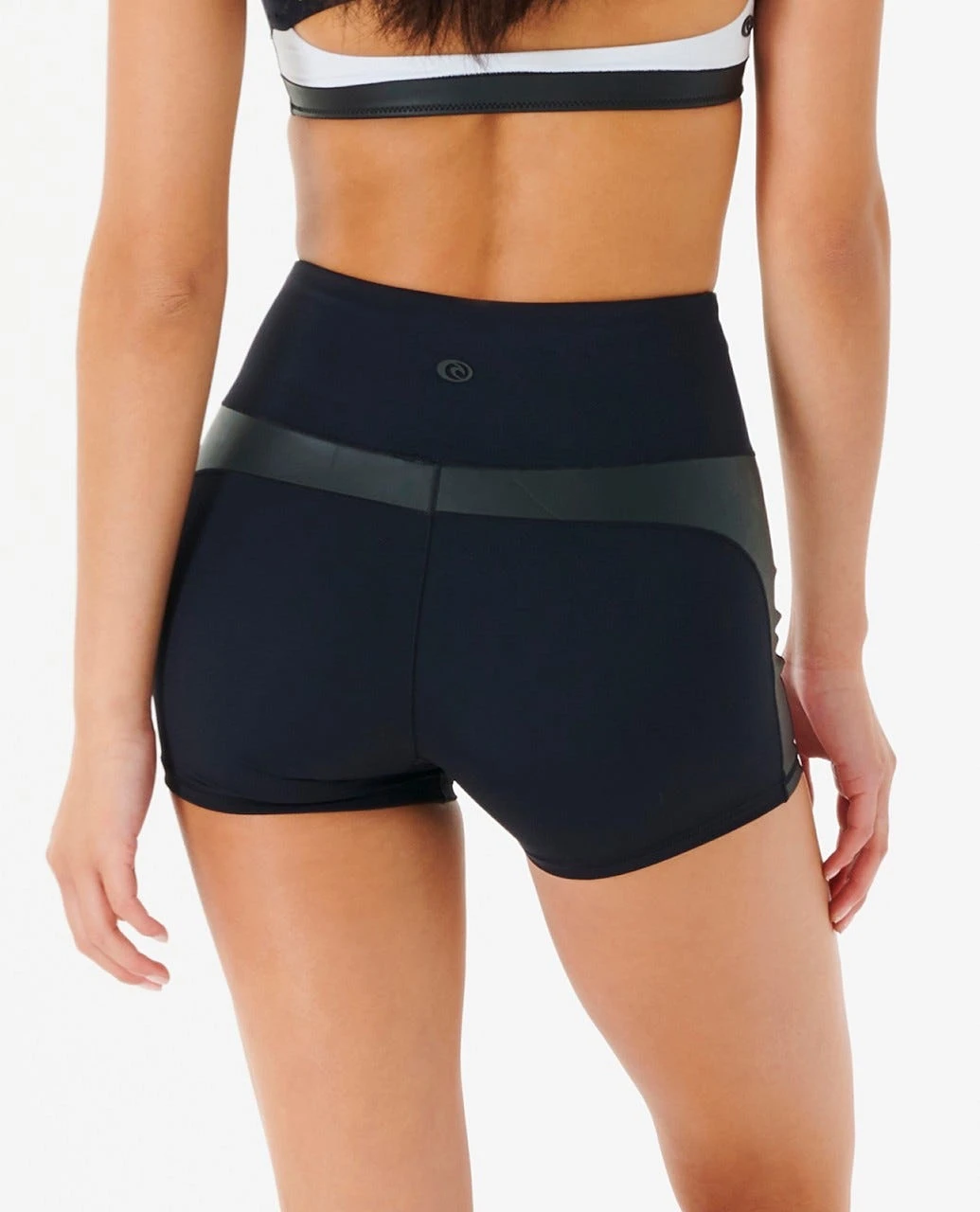 The Mirage Ultimate Short combines eco-friendly regenerated Italian Lycra for better support with our world class, high performance Glide Skin neoprene, for better grip and coverage. Featuring E-stitch details for optimal stretch, internal power mesh, wide waistband, and a lined front for comfort. This premium swim bottom is designed to fit, function and perform for surfers and active women.