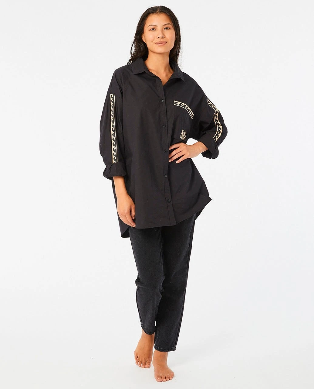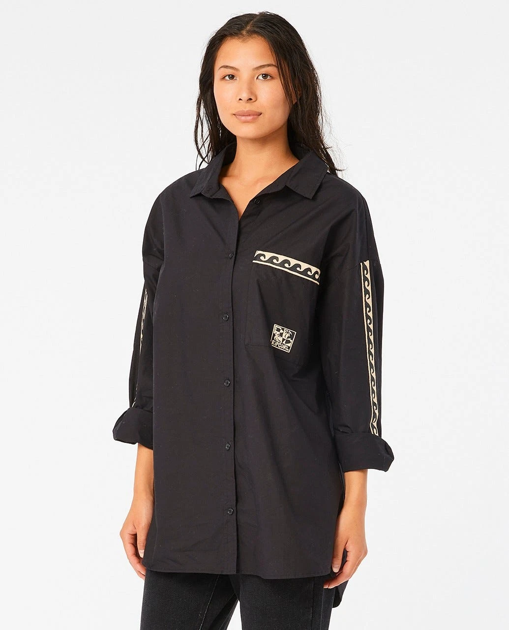 A fresh take on 90s streetwear, the New Wave Shirt is a rad women’s button through top. Featuring a front pocket with woven taping and badge details that give a pop of colour. Designed in a relaxed fit for ultimate comfort and a flowy, mellow vibe.