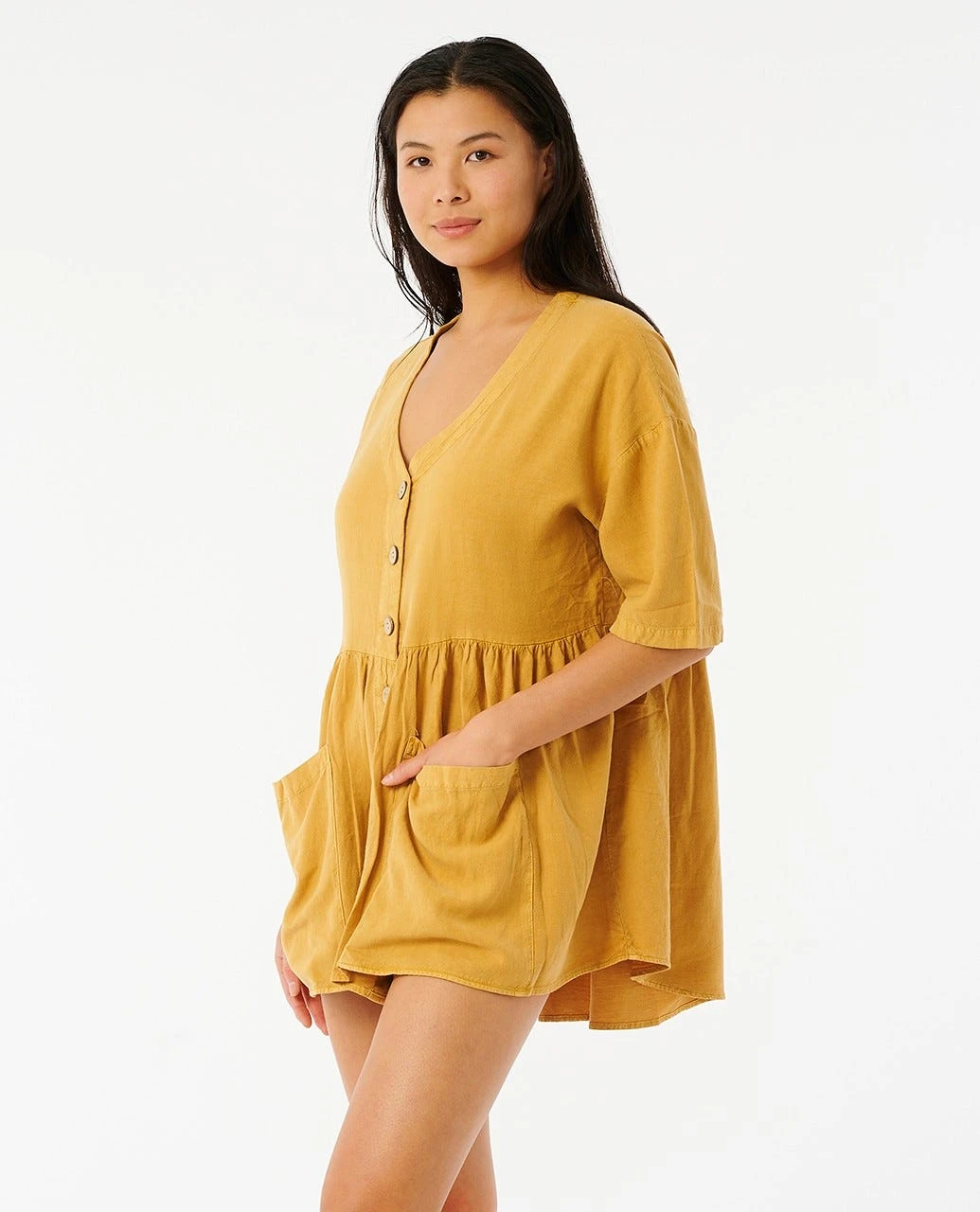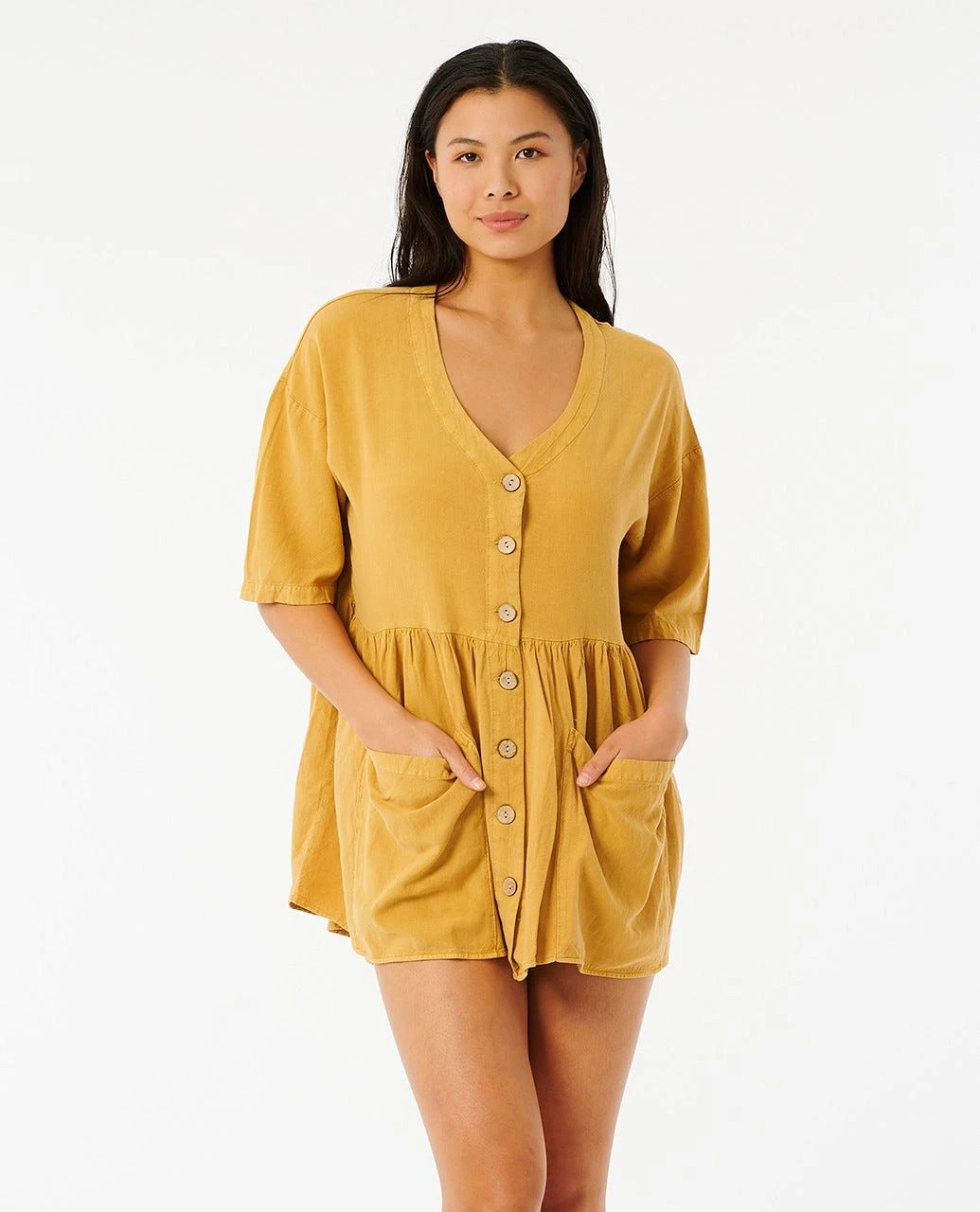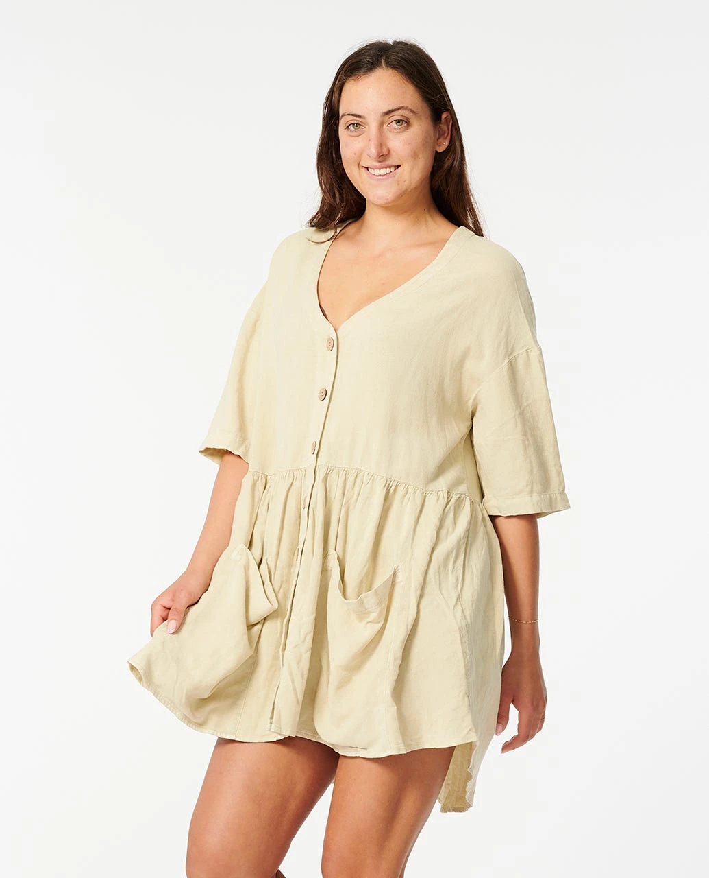 The Premium Linen Dress is a great women’s summer style. Designed in a midi length on the thigh, with a classic cut with v neck, coconut buttons, light and flowy drape and a pigment dyed linen fabric with that perfect vintage aesthetic.