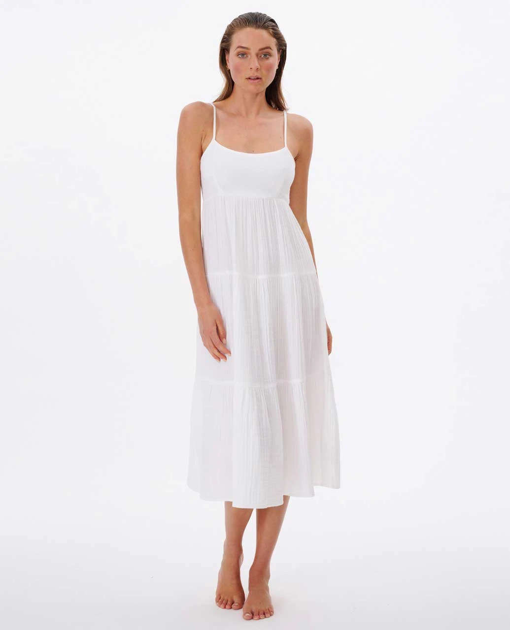 Make a fashion statement with the Premium Surf Midi Dress. Made from cotton double weave gauze fabric, this standard fit dress offers comfort and style. The garment wash adds a soft and subtle texture, while the adjustable straps allow for a customized fit. The smocking detail and shirring detail add trendy and feminine touches to this midi dress. Whether you’re attending a summer party or enjoying a day out, this surf midi dress is a fashionable and versatile choice.