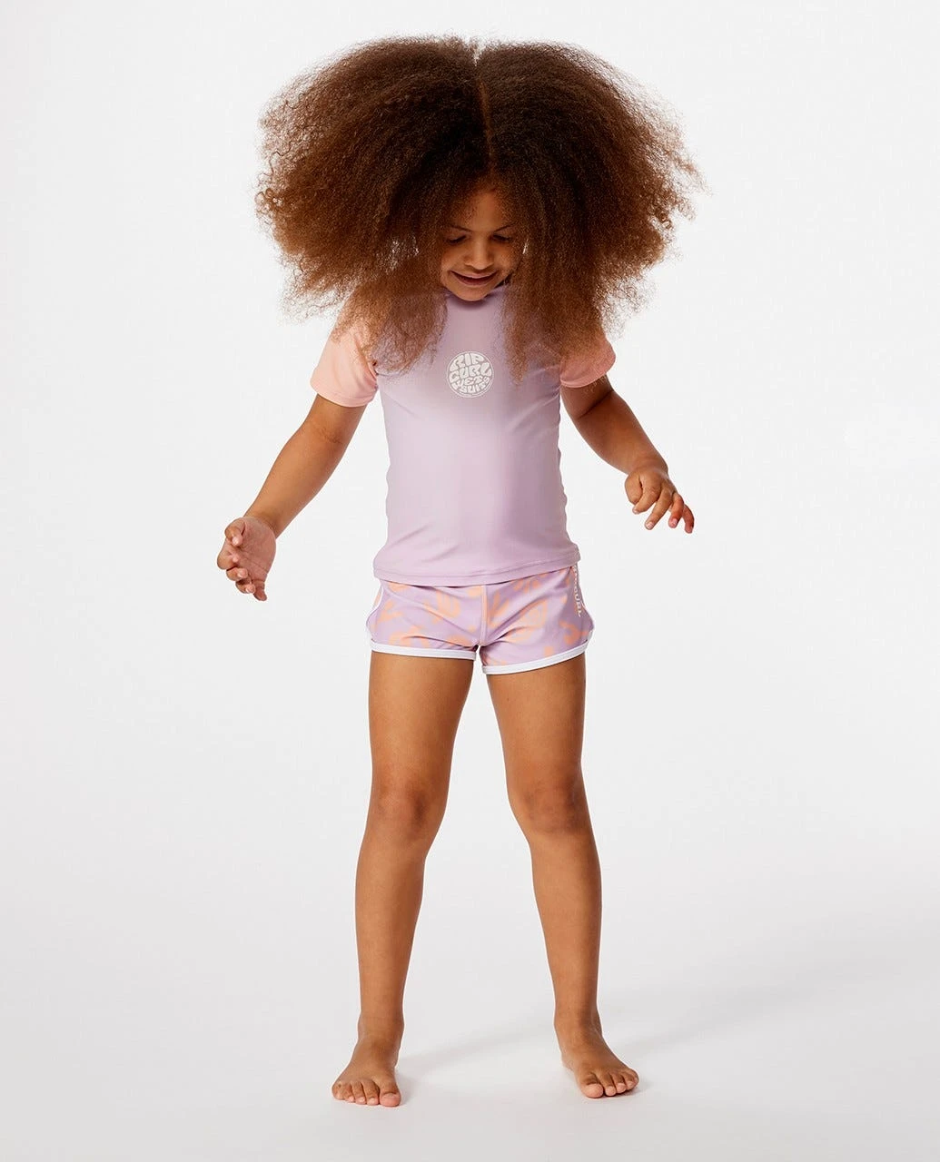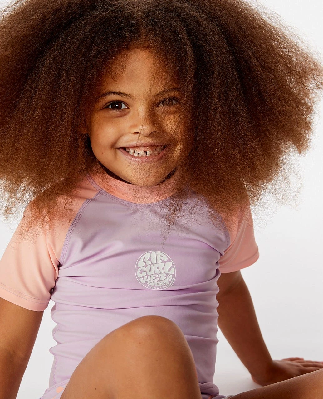 The Sea Mist Short Sleeve Rash Vest is an epic girl’s swim top made from Extra Life Microfibre Lycra that gives long-lasting comfort, fit and shape with no bagging or sagging. Designed in a standard fit for surfing, swimming and all day comfort. This great pullover rash guard features an excellent sun protection rating UPF 50+, offers full coverage, with contrast sleeves and placement Rip Curl logo print.