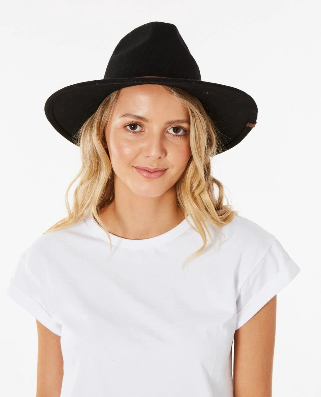 Made with a quality wool felt, the Sierra Wool Panama is a great wool felt hat for ladies. Designed with a moulded structure, a stiffened brim, a leather headband and a leather clamp.