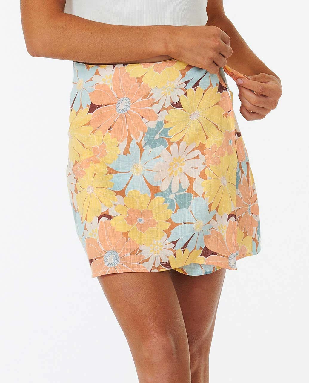 Step into summer with the Sunrise Session Mini Wrap Skirt. Crafted from textured Ecovero fabric, this standard fit skirt offers both style and comfort. The all-over yardage print adds a playful touch, while the functional side tie detail allows for a customized fit. Whether you’re heading to the beach or enjoying a day out, this skirt is a versatile and trendy choice for any occasion.