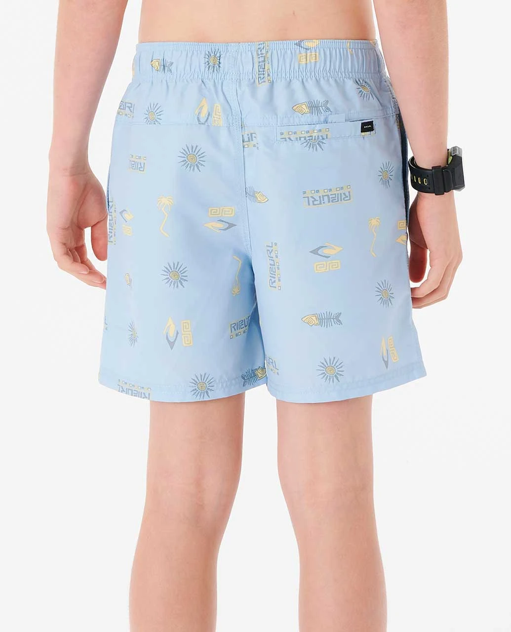 Features: RECYCLED RIPSUEDE, Volley fit, 15” outseam, Elastic waistband, Mesh side pockets, Woven badge, Back pocket with velcro, Yardage print, Hydrophobic quick dry.