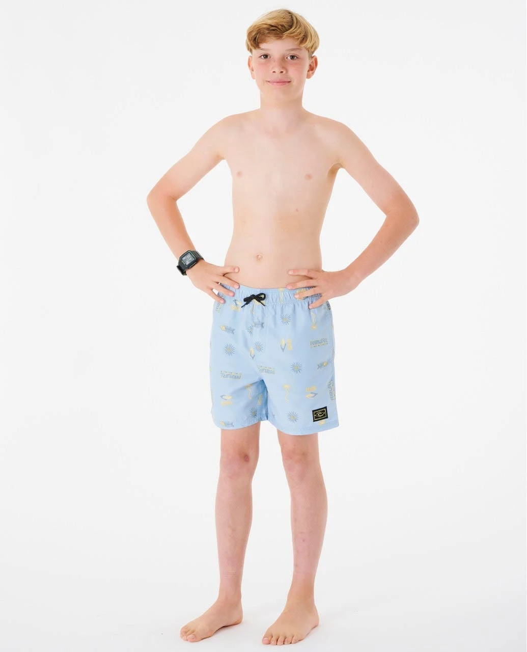 The Tube Heads Volley is a rad boy’s surf short. These trunks are designed in a classic volley fit with elastic waistband, mesh side pockets, a 15″ leg length, and recycled ripsuede fabric that holds its own in and out of the water. Featuring fun yardage print, and drawcord. Plus they’re treated with DWR for that quick-dry all day comfort.